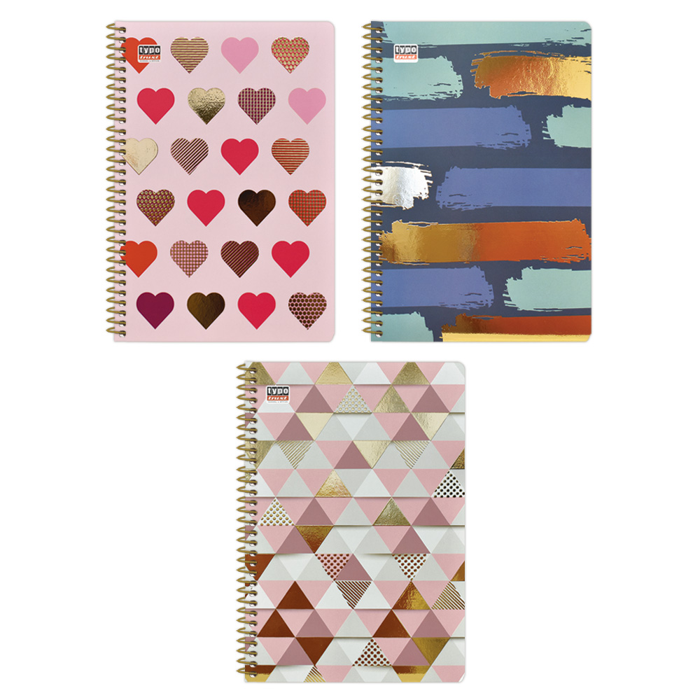 Σπιράλ τετράδιο με χρυσοτυπία - 3 θεμάτων Β5. Με εξώφυλλο πλαστικοποιημένο 350 γρ. και με σκληρό οπισθόφυλλο για να μπορείς να γράφεις σταθερά. Τα φύλλα είναι από εξαιρετικής ποιότητας χαρτί 70γρ. και η γραμμογράφηση είναι ριγέ με σωστές αποστάσεις. Είναι 3 θεμάτων, με διαχωριστικά για μεγαλύτερη ευκολία. Διατίθεται σε 3 σχέδια. Η συσκευασία είναι ανάμεικτων σχεδίων σε πακέτο των 8τεμ.