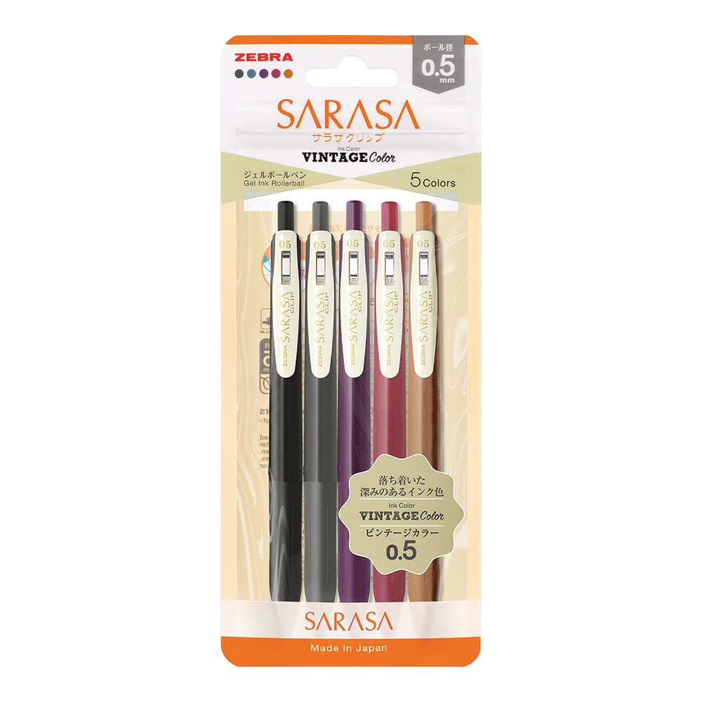 ZEBRA Στυλό Gel με κουμπί SARASA CLIP VINTAGE-Set 2 (5pcs)