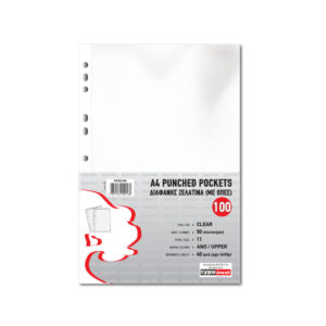 Βάλε σε τάξη τις σημειώσεις σου! Ζελάτίνα ενισχυμένη στο πλάι, με 11 οπές για να προσαρμόζεται σε όλα τα κλασέρ και ντοσιέ μεγέθους Α4, με 2,3 ή 4 κρίκους. Άνοιγμα στο πάνω μέρος.